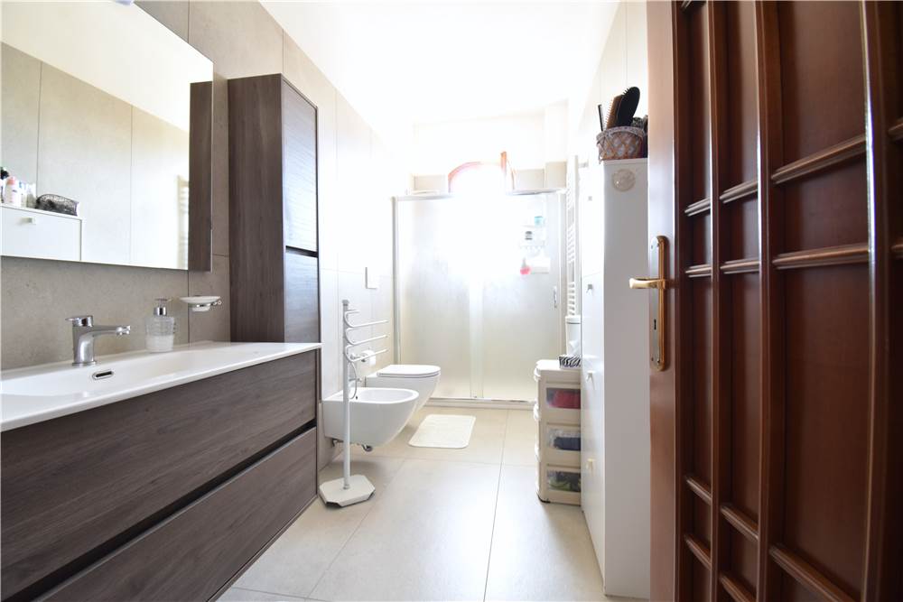 Nella zona giorno troviamo un'ulteriore bagno, rifinito, completo di box doccia.